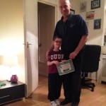 Last December Andrew Conlon, aged five, completed the Santa Dash in Glasgow with his Dad, Michael. They made a donation to Brain Tumour Action and we were delighted to present Andrew with a special Certificate to mark his brilliant achievement.